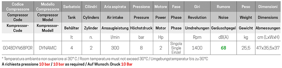 DYNAMIC 4 L Twin Cylinder is the most powerful compressor for professional use on the market.
